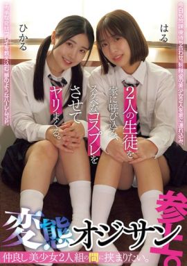 片名: 想夾在好姐妹2人組之間。變態大叔降臨。把2名學生叫到家裡,讓她們穿上色情的Cosplay,然後幹個不停。  |