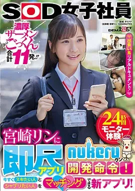 | 片名: SOD女子社員・宮崎リンに即尺アプリ『nukeruクン』開発命令!今すぐヌキたい人とシャブリたい人をマッチングできる新アプリ!24時間モニター体験! |